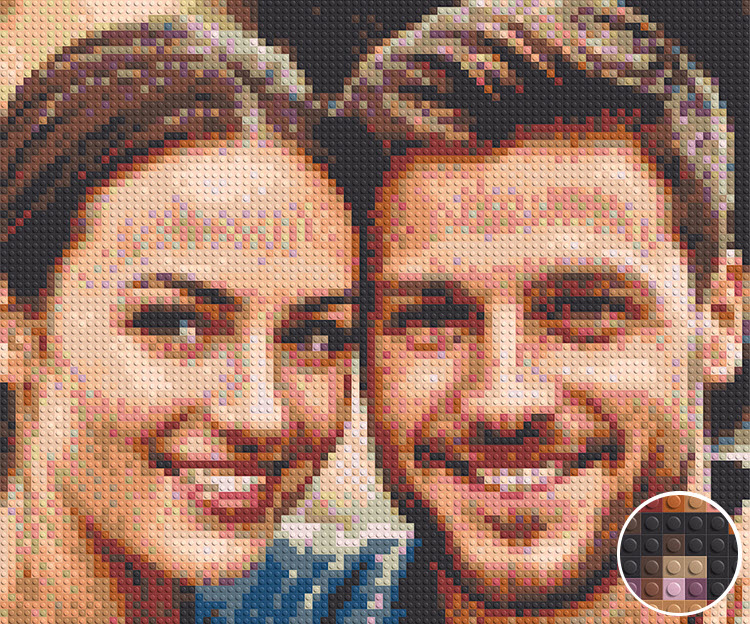 Notre portrait LEGO personnalisé fait partie d’une collection de créations sur mesure. Près de 100 couleurs disponibles — jusqu’à 25 sélectionnées pour garantir un rendu fidèle des visages. Dès 6 ans.