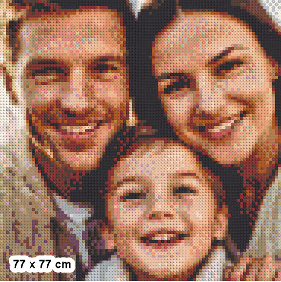 Créez un portrait de famille LEGO unique à partir de votre photo préférée. Vous construisez votre mosaïque brique par brique — comme un coloriage par numéros. Kit complet avec briques compatibles LEGO® triées par couleur, cadre élégant et instructions détaillées.